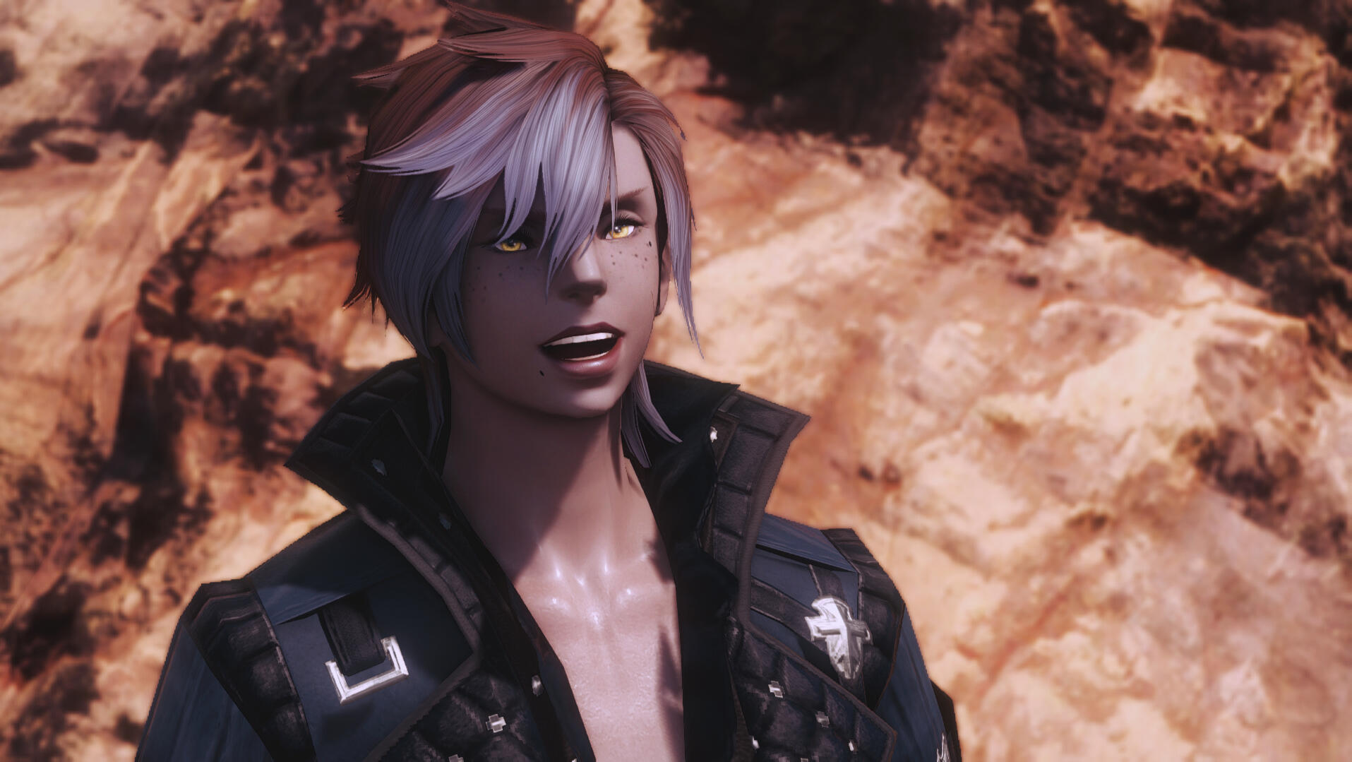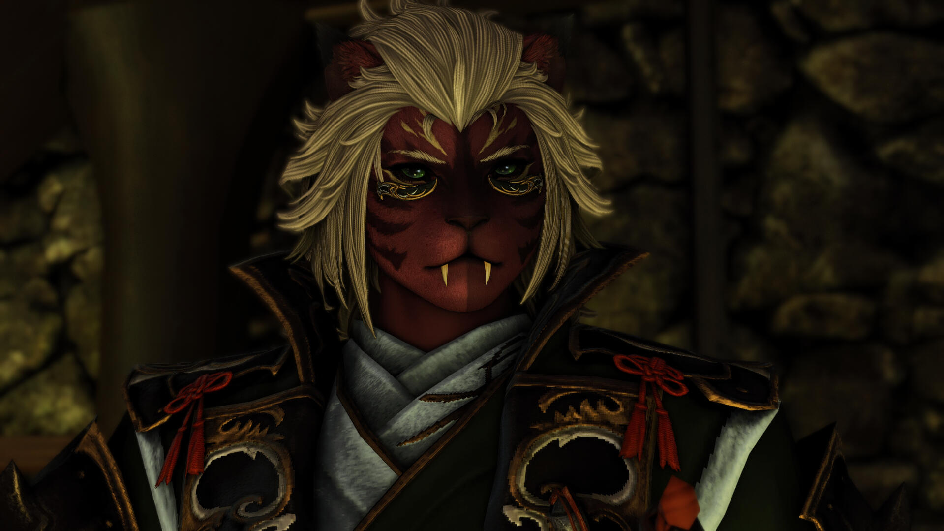 Bozjan Queensguard: Ona is a Queensguard of Clan Tyranit, and happily gives this title and explains what it is to those she meets.Searching For Her Sister: She is searching for her Sister, whom was the Queen of Clan Tyranit. This is a goal she is actively seeking help with, and wherever she goes is usually linked in some way to this path.Female Hrothgar: Being a female Hrothgar, she is far rarer than the males of her race. Combined with her striking Samurai garb - She often turns heads wherever she goes.Bozjan Accent: Ona speaks with a Bozjan accent. Her Eorzean is very clear and fluent, but the accent is hard to hide.