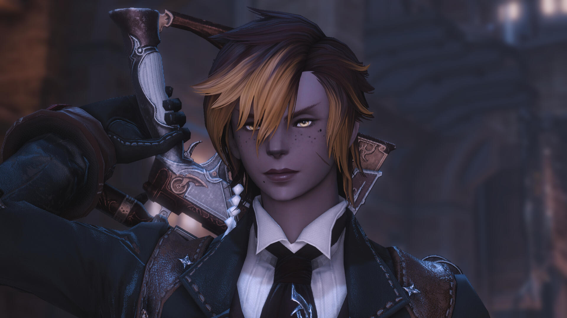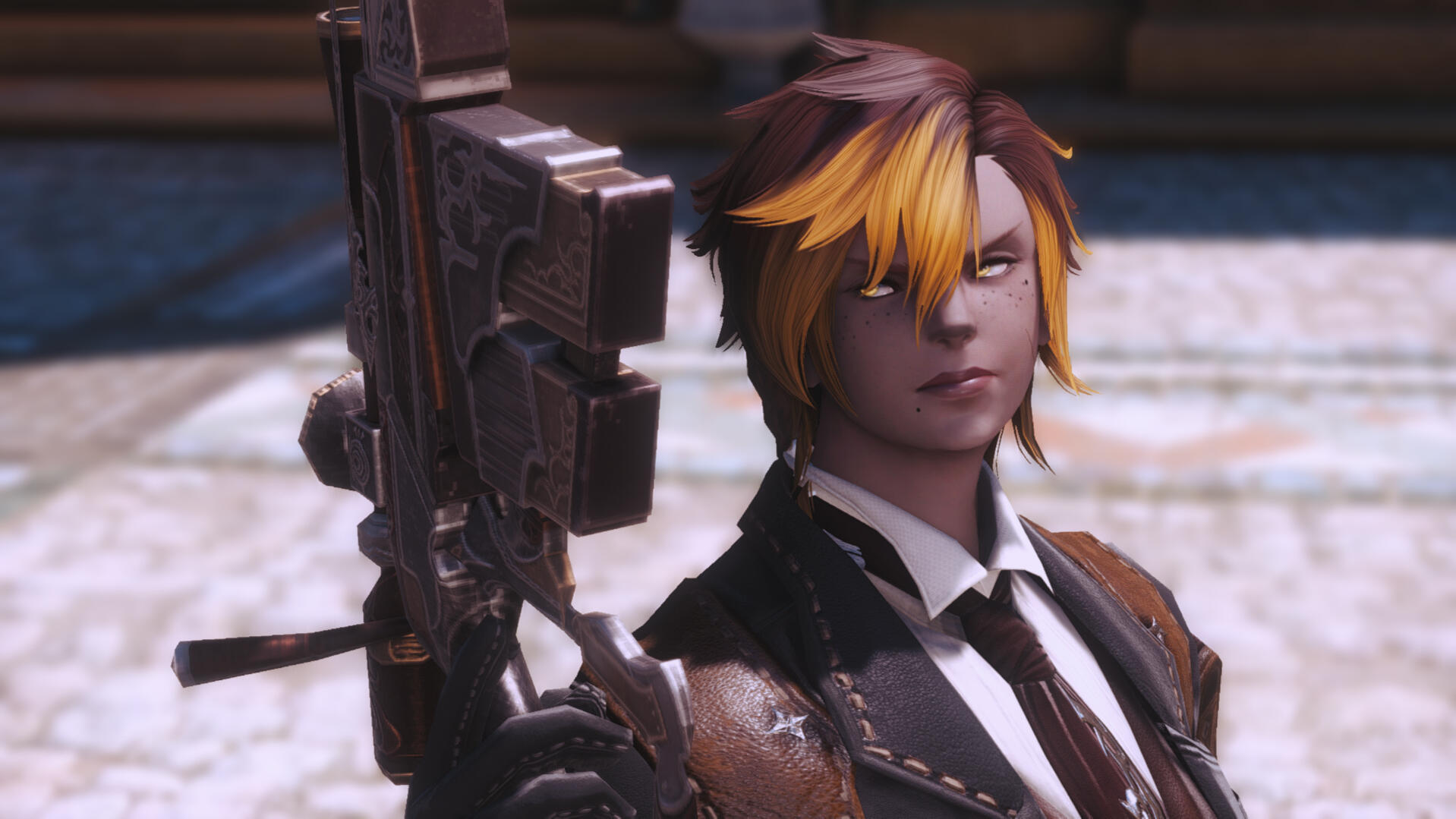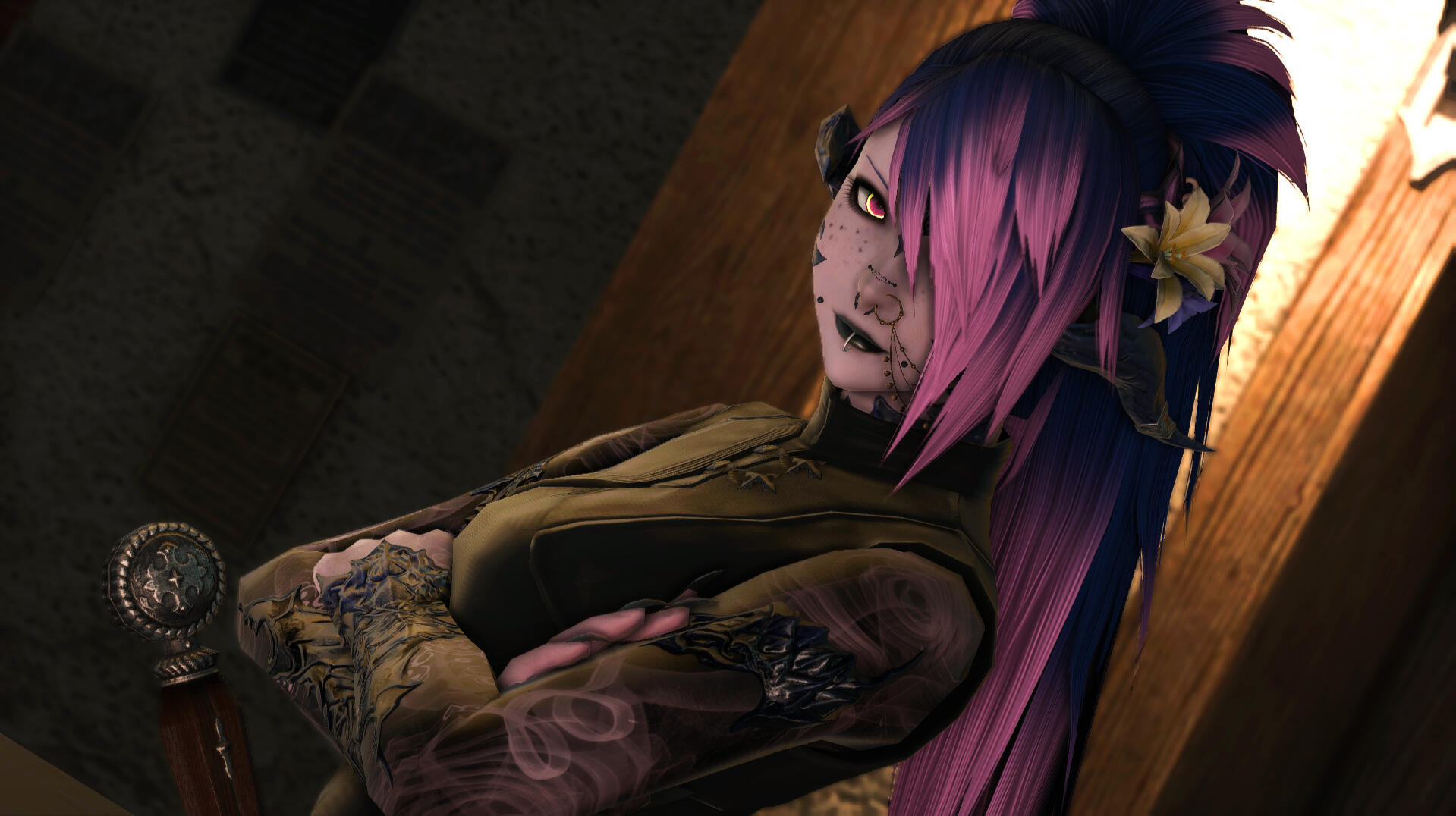 Ul'dah Mercenary: Viper has been a regular face in the Quicksand adventurer's guild for most of her life. Her parents were also regular faces, and trained her in the lifestyle from an early age. Maybe you know her from that world?Far Traveller: Viper gets around quite a bit. Ever busy and working hard, she's always taking jobs, leves and bodyguard work to pay her way. Hustle!Hellsguard: Viper is a Hellsguard Roegadyn. While she's never been to the homeland of her people, she's always eager to meet and interact with fellow kin out in the world.Duskwight: Viper can often be seen in the company of a Duskwight girl, far younger than her. She looks to be about 16 years old, and they commonly refer to each other as sisters, though Viper is very clearly her guardian. How'd a Hellsguard end up with a Duskwight sister?Carteneau and Ghimlyt: Viper fought at both battles, though she wasn't at the main one in Carteneau, and was fighting smaller forces just south. Maybe you were there too.