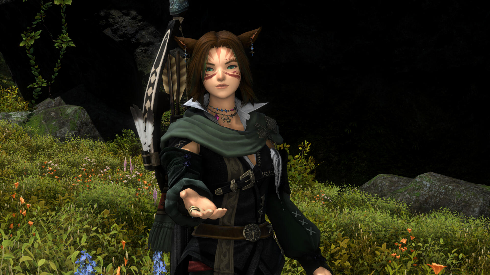 Huntress and Adventurer: J'kaisha is often out and about in the world, taking leve's and fighting the good fight. While she's not one for a one-on-one combat, she can track and support allies from afar with arrows. Maybe you've worked with her before?Seeker: She's a Seeker of the Jackal tribe, given her namesake. Though she doesn't seem to talk about it much. Maybe there's a reason why.Lost Sister: J'kaisha is searching for her Sister, lost many years ago. She's often asking around Keeper establishments, trying to find any information on her. Maybe you've overheard her talking or she's asked you about it before?Far Traveller: J'kaisha is constantly on the move, never really setting roots down in any one location. Eorzea is a land well travelled to her.