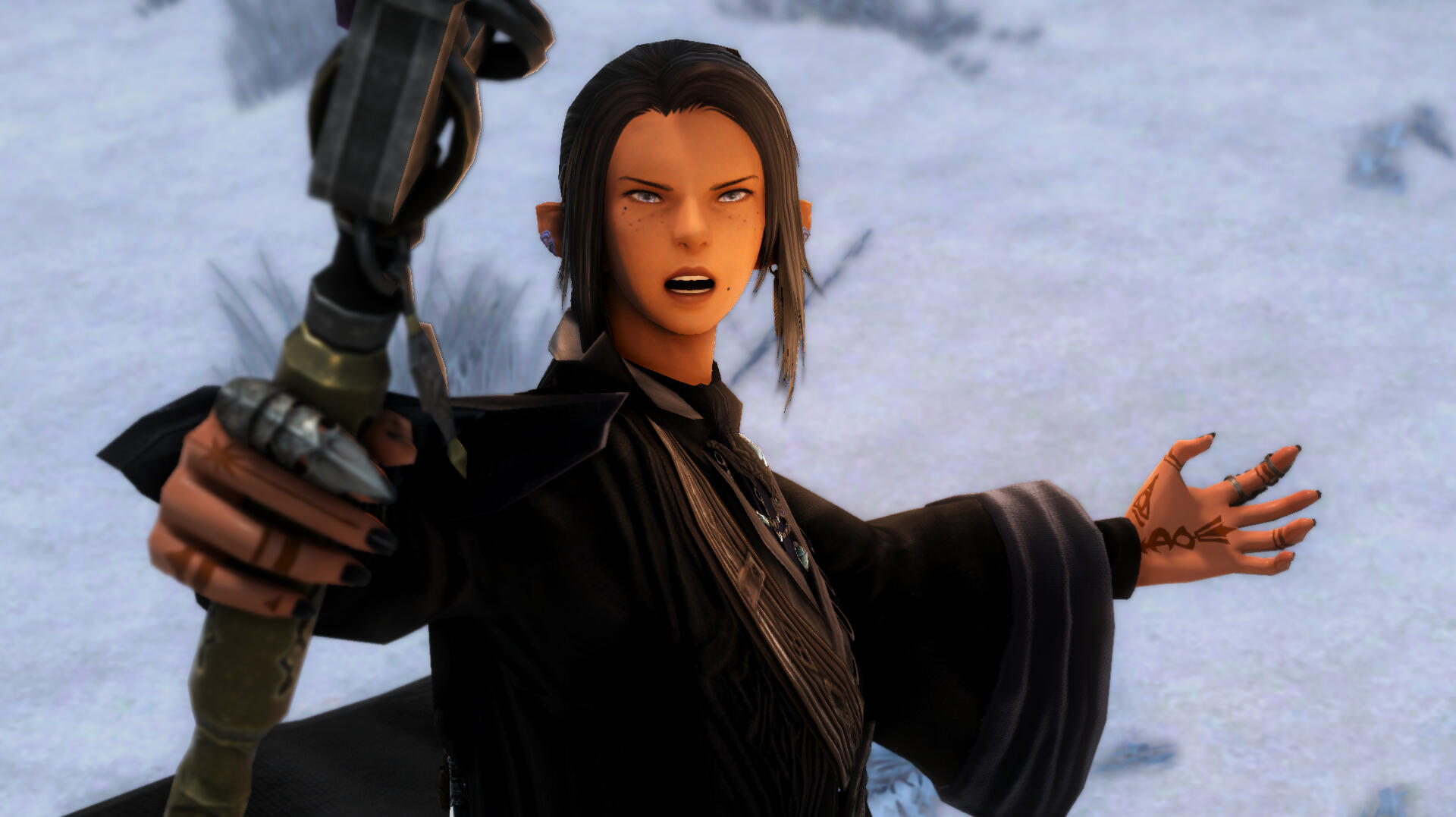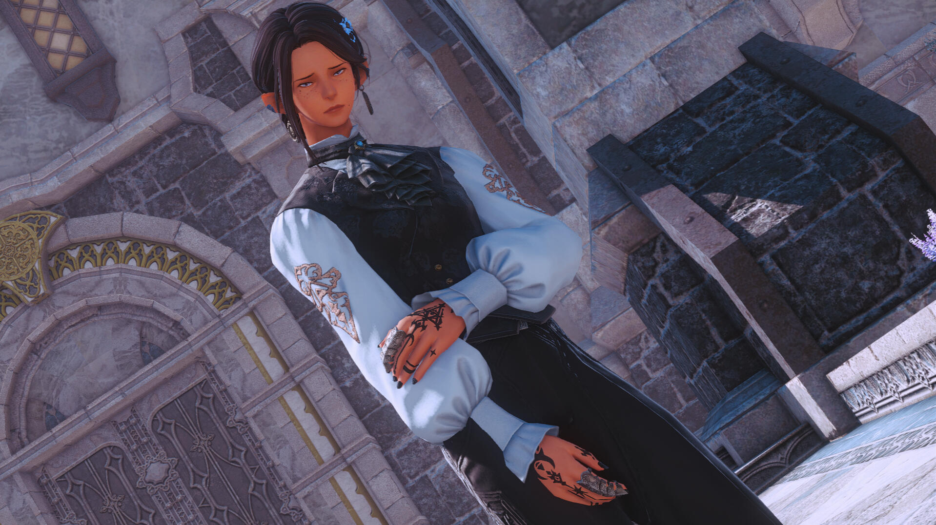 - Aetheric hand tattoos in the shape of runes.